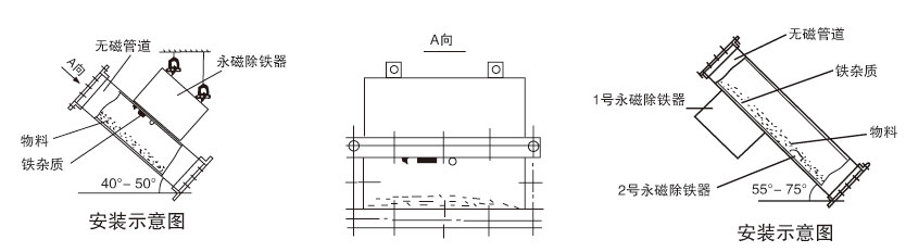 適合沒有輸送皮帶、物料中含鐵較少,且只能提供下料溜槽的場合。主要應用于水泥、化工、煤炭、塑料、耐火材料、建材等行業的下料管道中清除雜物。